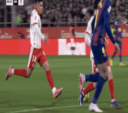 第87分钟,替补登场的赫罗纳打进绝杀,但这一次进攻的过程中,埃切维里踩到了孔德的脚踝。