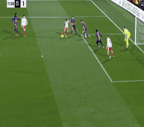 第73分钟,赫罗纳又打进一球,霍安·加西亚在丢球前上演连续极限扑救,赫罗纳越位位置获利,进球被判无效。