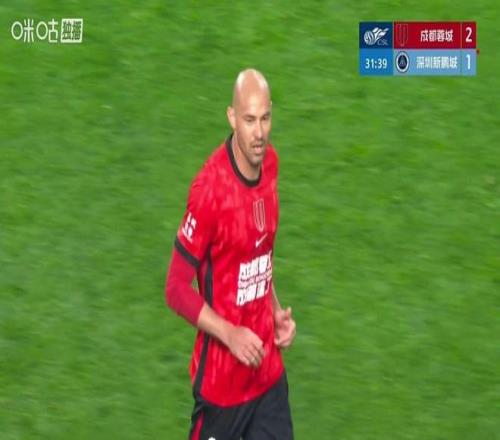 紧接着第31分钟,罗慕洛一脚横传打穿深圳新鹏城防线,费利佩抢点破门,帮助成都蓉城2-1反超比分。