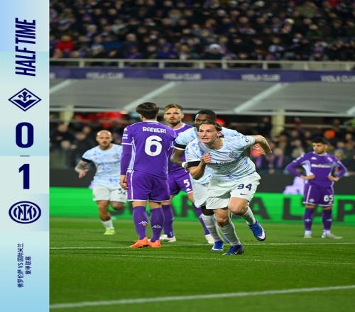 上半场比赛结束,我们暂时1比0领先佛罗伦萨。