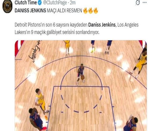 活塞终结湖人9连胜詹金斯新高30+8东契奇32+7+6&失绝平三分