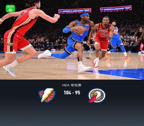 第四节雷霆亚历山大拿下10分,鹈鹕锡安-威廉森拿下8分,最终雷霆104-95战胜鹈鹕