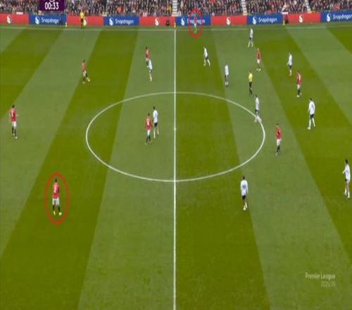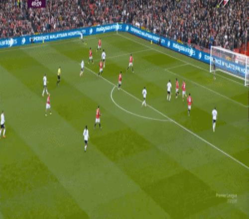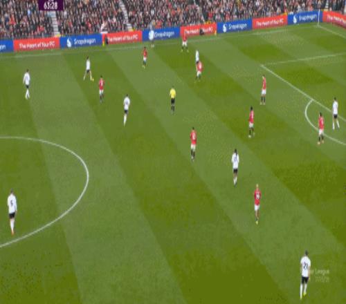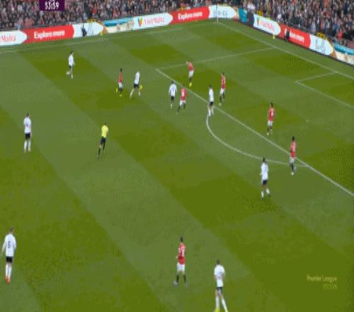 这显然是找对进攻方向的合理收获,但是,曼联的防守压力并未因此减轻,富勒姆在这一侧承压,但也能在这一侧直接向前,不管是在丢球前: